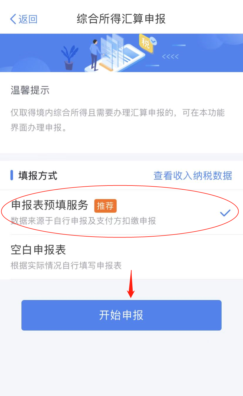 (三)选择填报方式,建议选择“申报表预填服务”→“开始申报”,可快速进行申报。