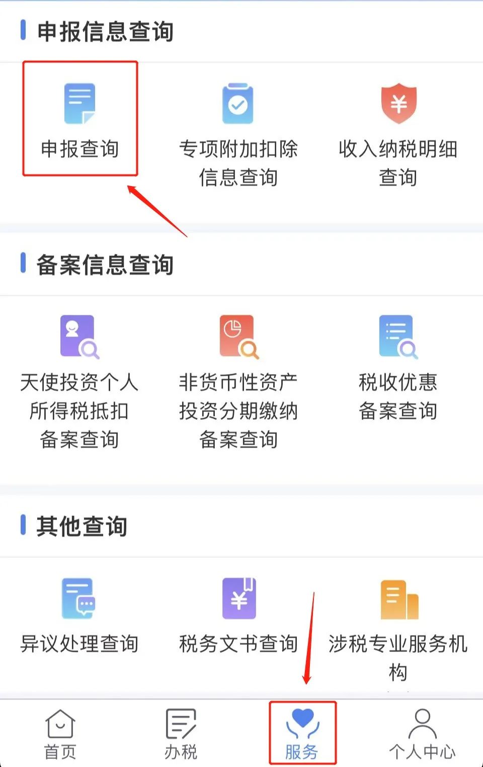 如完成以上汇算清缴操作后,需要修改相关信息,可通过“个人所得税”APP首页底部“服务”-“申报查询”-“已完成”,查看申报记录、更正或作废。