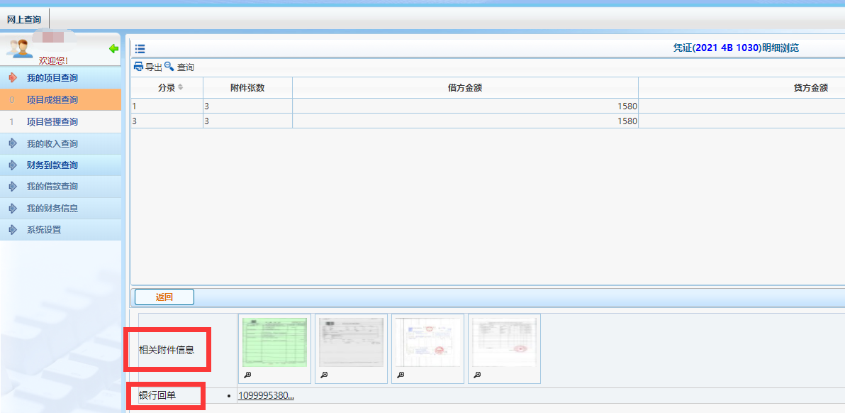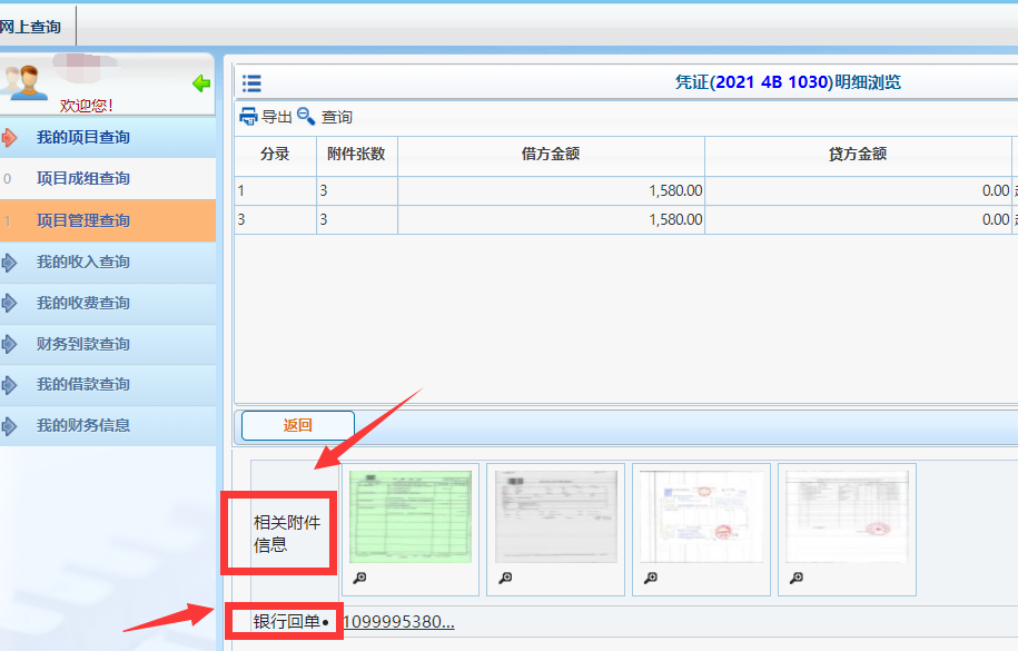 (五)【相关附件信息】即为影像化会计凭证。凭单号中B代表“银行”,含有银行收款支付信息,根据需求自行打印【银行回单】。